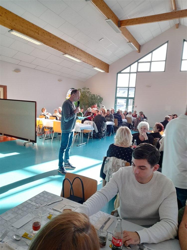 Le président a souligné que le résultat du repas permet des travaux de restauration dans l’église. L’année 2023, la tombe du curé fondateur a été rénovée. Le projet 2024, est le nettoyage des tableaux du chemin de croix avec ces 14 stations, et l’embellissement de leurs cadres.