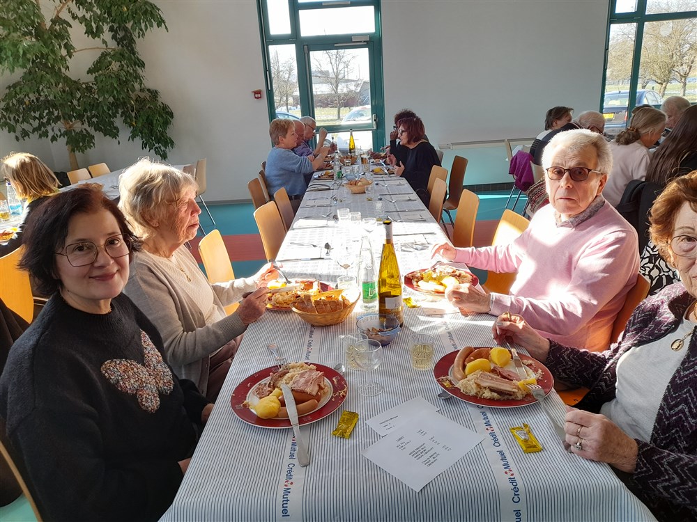 Le repas paroissial a eu lieu le dimanche 21 janvier 2024 : au menu la traditionnelle choucroute garnie et le conseil de fabrique a été soutenu pour la 2ème année par Charles Wersinger et de son fils Florian pour son élaboration. Choucroute et son accompagnement étaient excellents. Le dessert : la bonne glace apportée par Pascal Herzog, qui répond toujours présent. Les pâtissières du village ont aussi confectionné des cakes pour agrémenter le café, tout comme le digestif apporté par Philippe.
