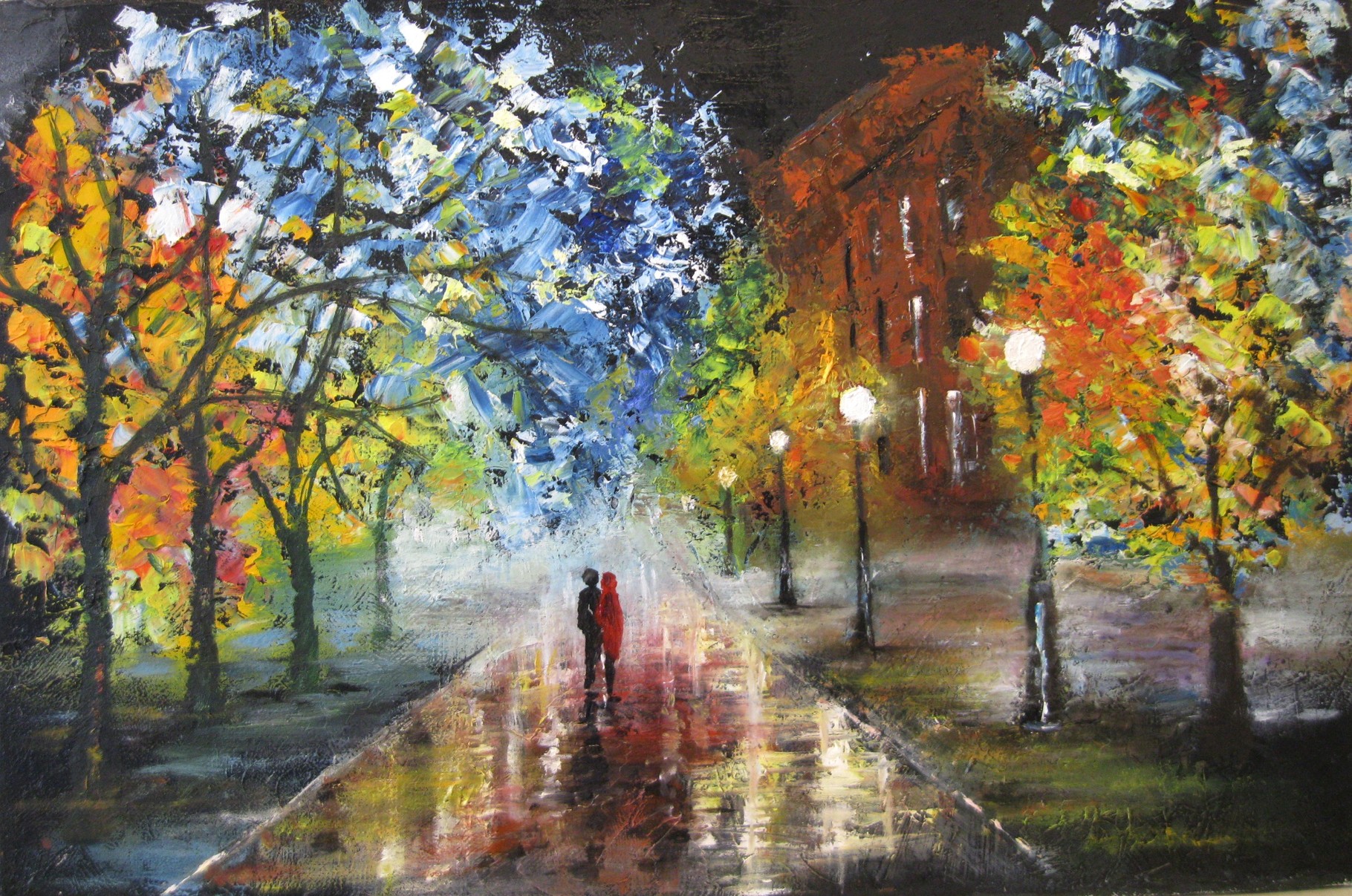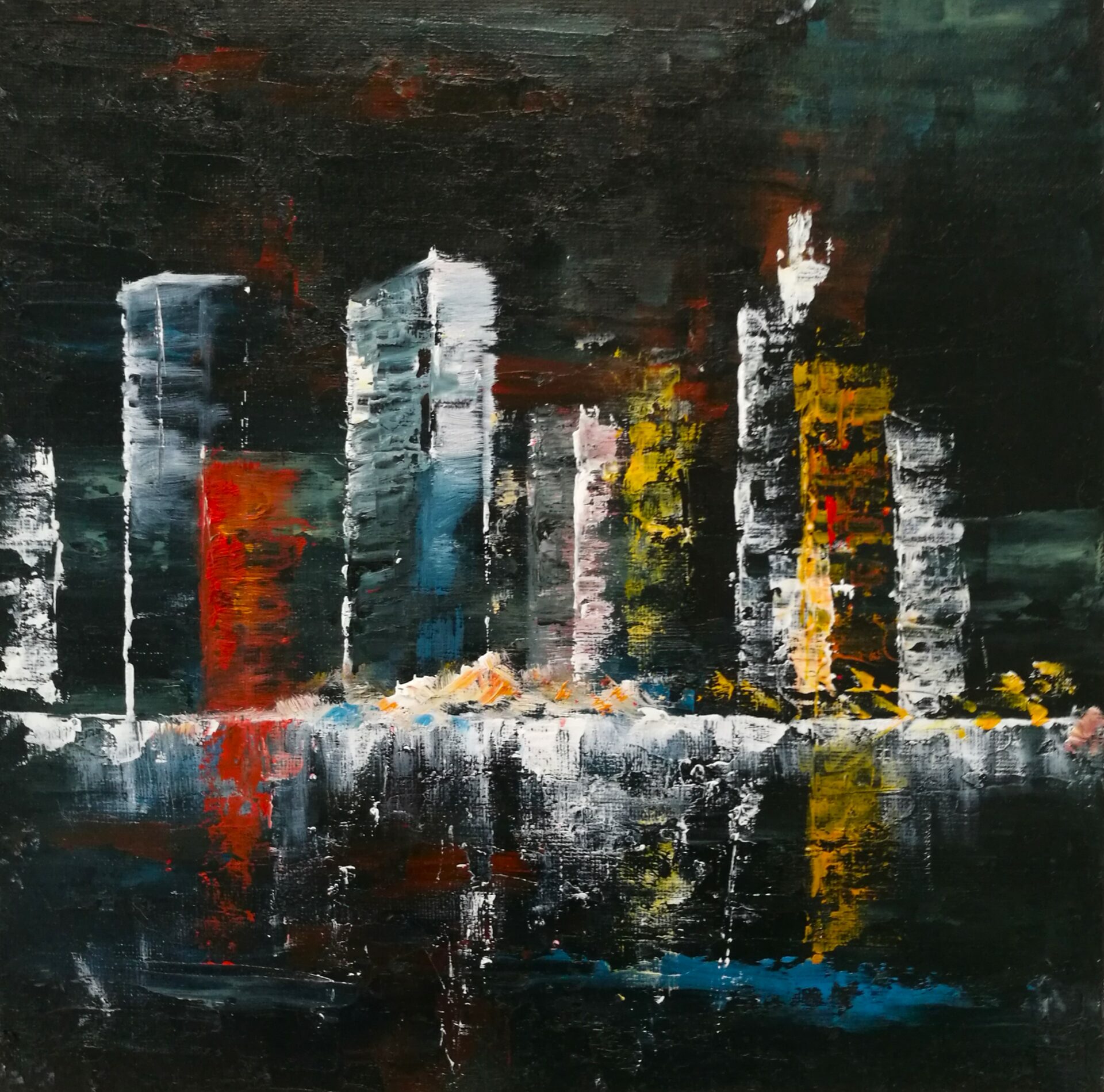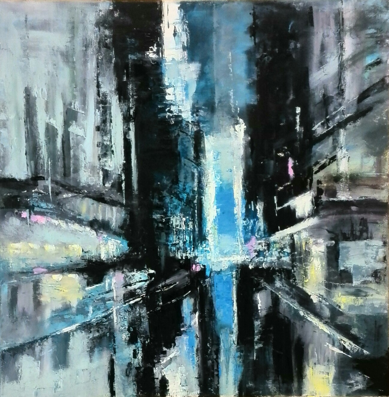 "Pluie sur la ville", huile sur toile de Nadine GROLLAUD RANDÉ, Hagenb'Art