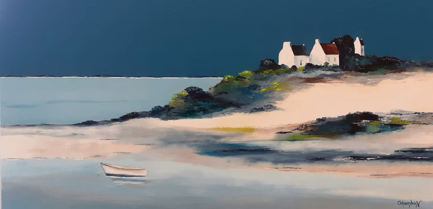 "L'Ile suédoise de Sandhamm", huile sur toile de Véronique OSCHSENBEIN, Hagenb'Art