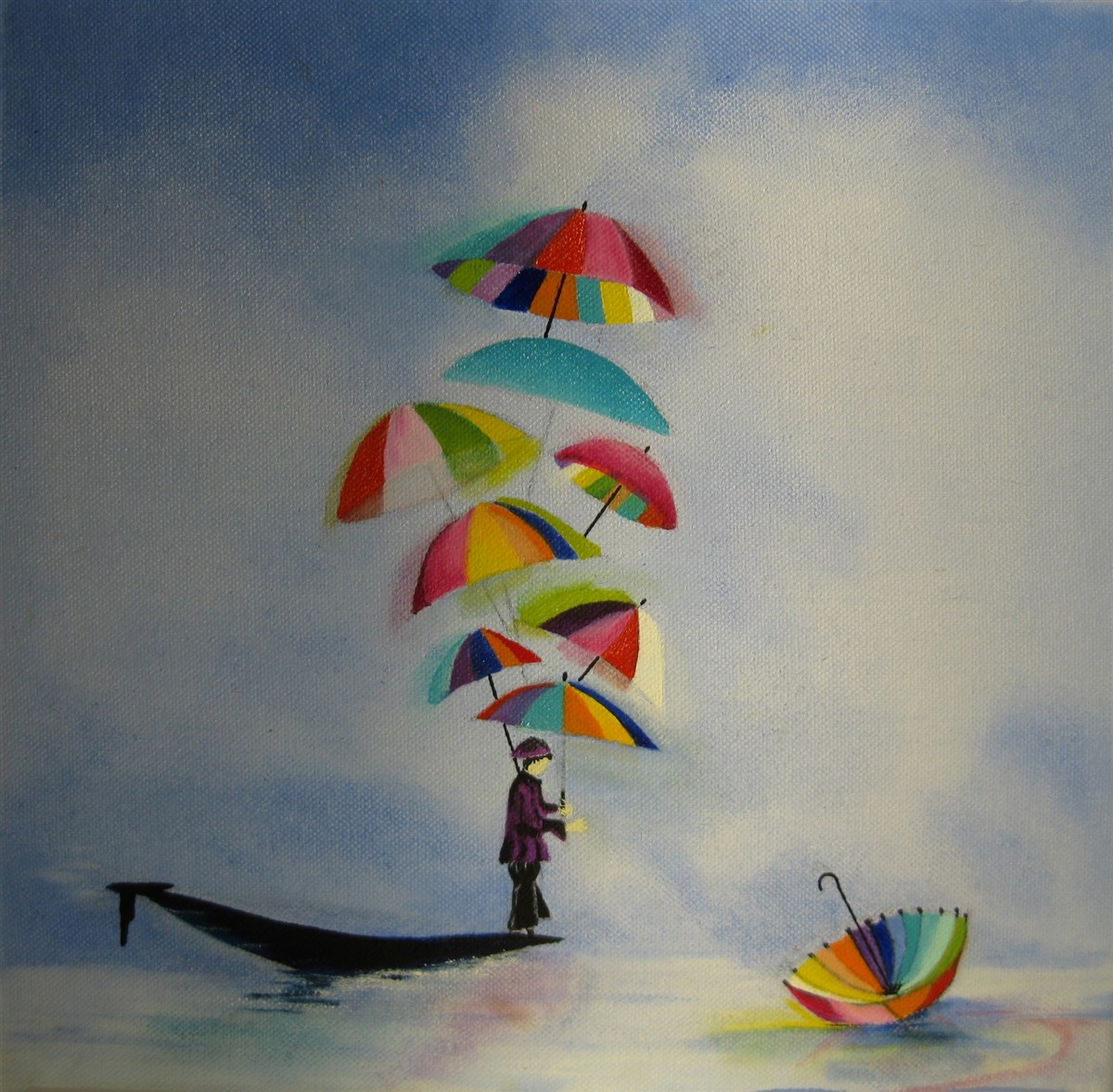 "Le jongleur de couleurs", huile sur toile de Joëlle Gebel, Hagenb'Art