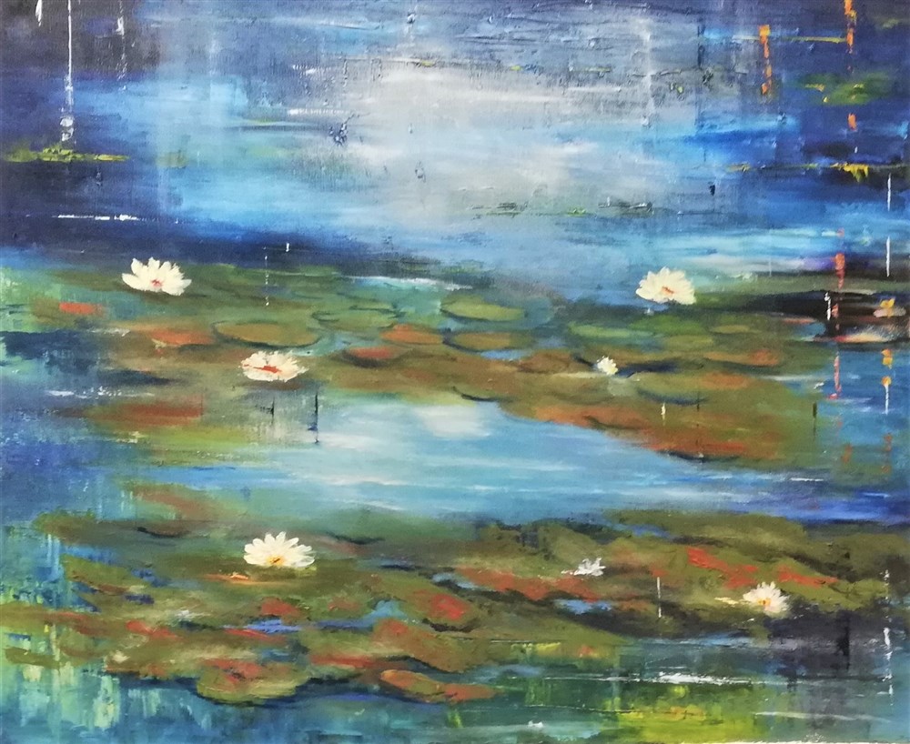 "Étang aux nénuphars", huile sur toile, Chantal Carriot, Hagenb'Art