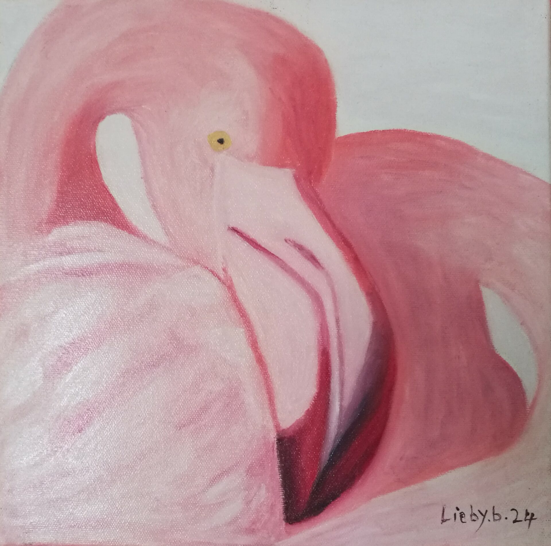 "Flamand rose" huile sur toile de Bernard Lieby, Hagenb'Art