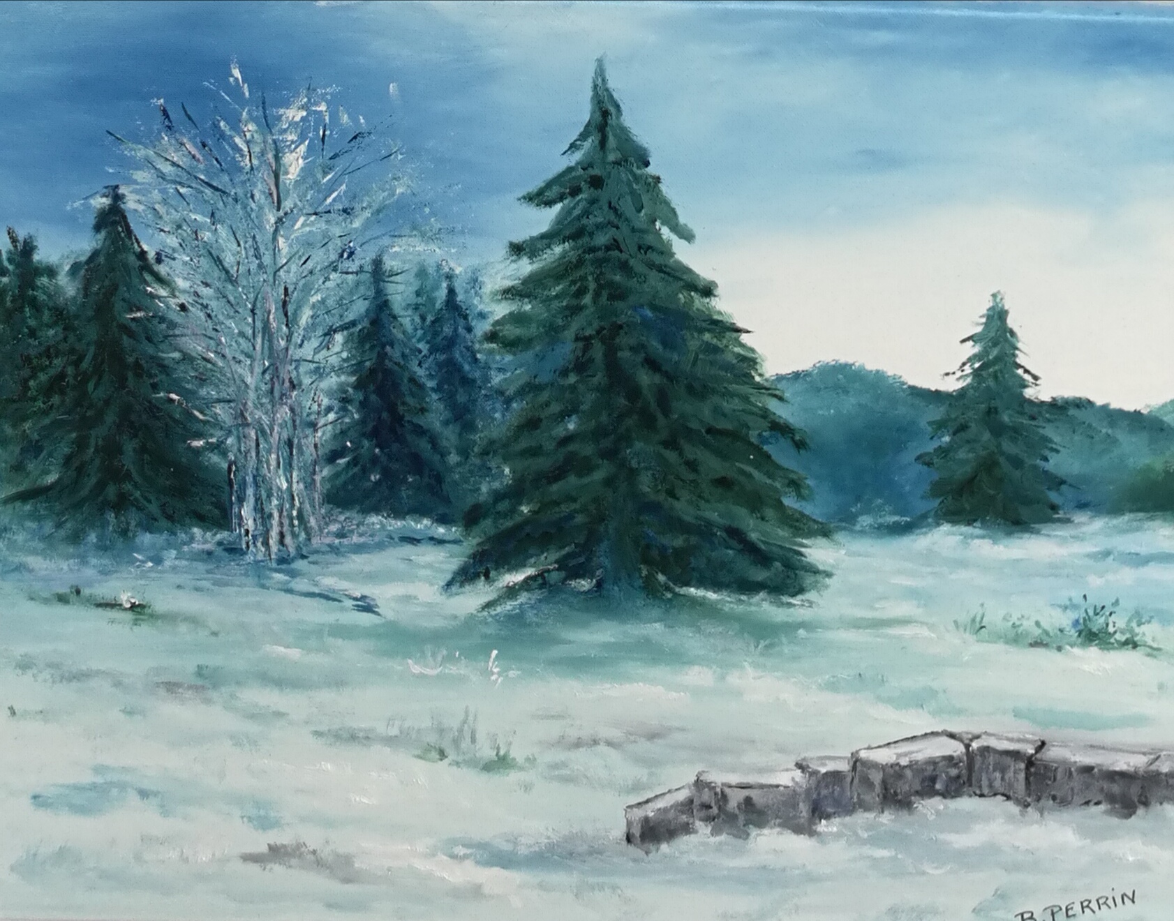 "Hiver dans nos contrées", huile sur toile de Bernadette Perrin, Hagenb'Art
