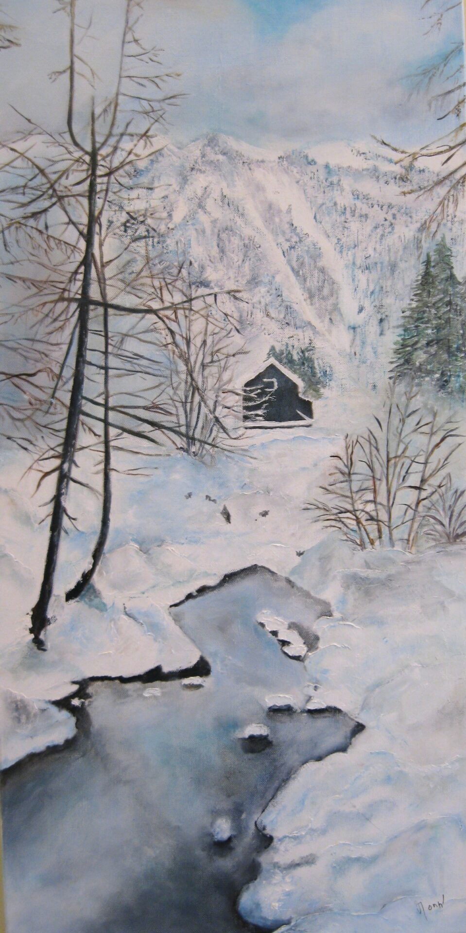 "Hiver en Montagne", huile sur toile de Bernadette PERRIN, Hagenb'Art