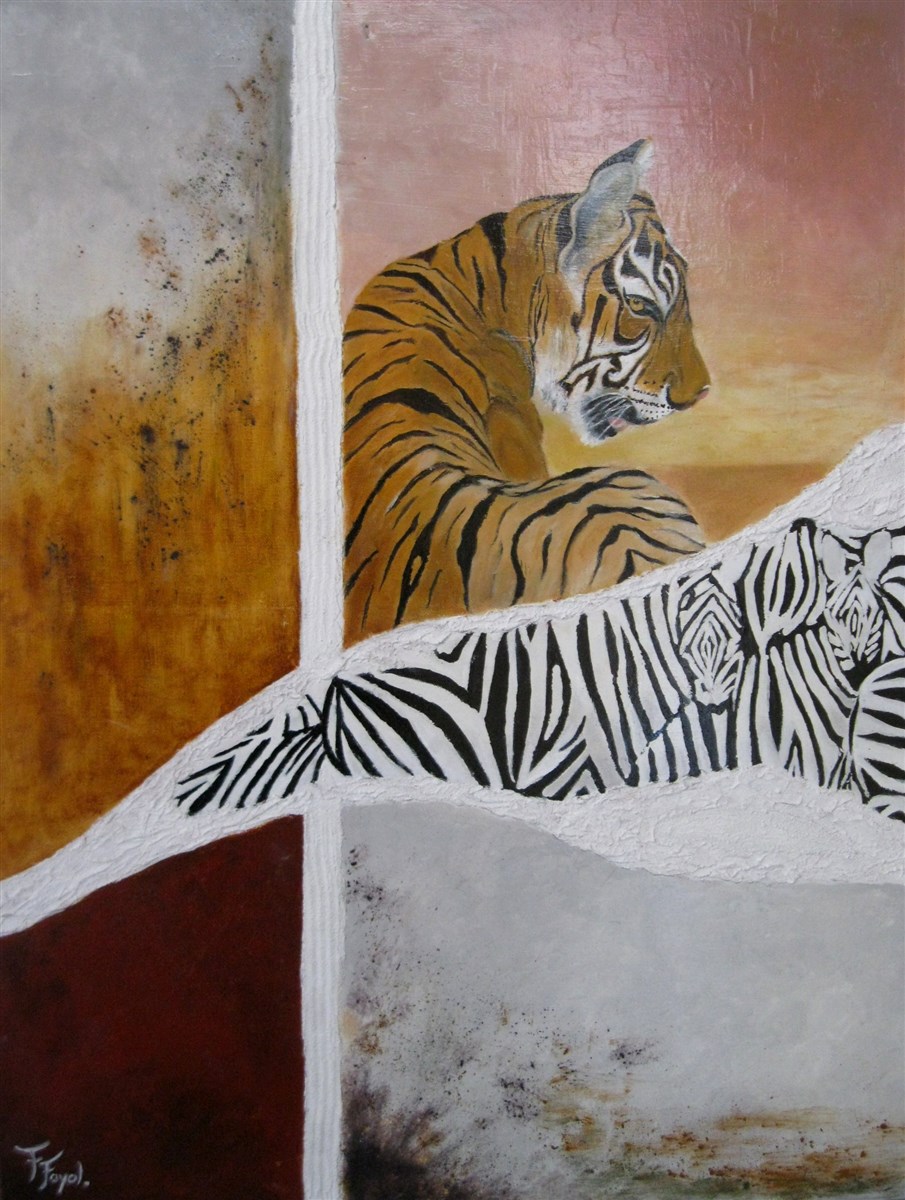 "Repos des fauves", huile sur toile de Françoise Fayolle, Hagenb'Art