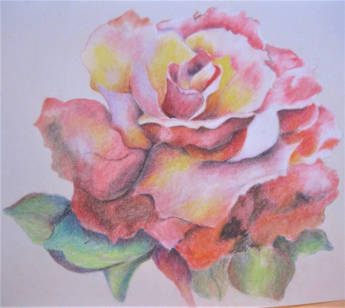 "Rose précoce", dessin au pastel de Joëlle Mousquès, Hagenb'Art