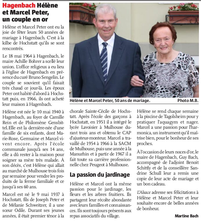 Noces d’or de M. Marcel PETER et Mme Hélène REIN