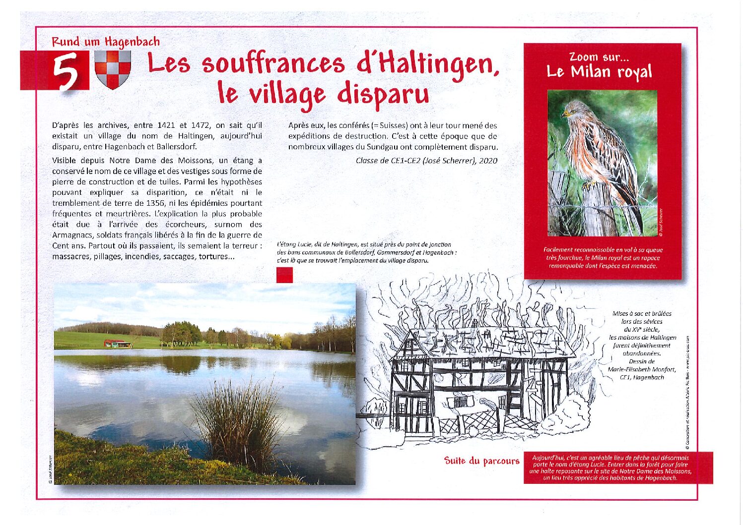 Ce sont les enseignants des 3 classes élémentaires du village, qui dans le cadre d’une action du projet d’école ont eu l’idée de créer un sentier d’interprétation et de découverte autour de Hagenbach.