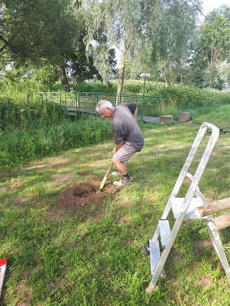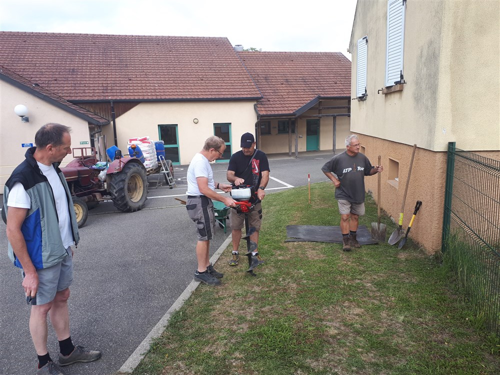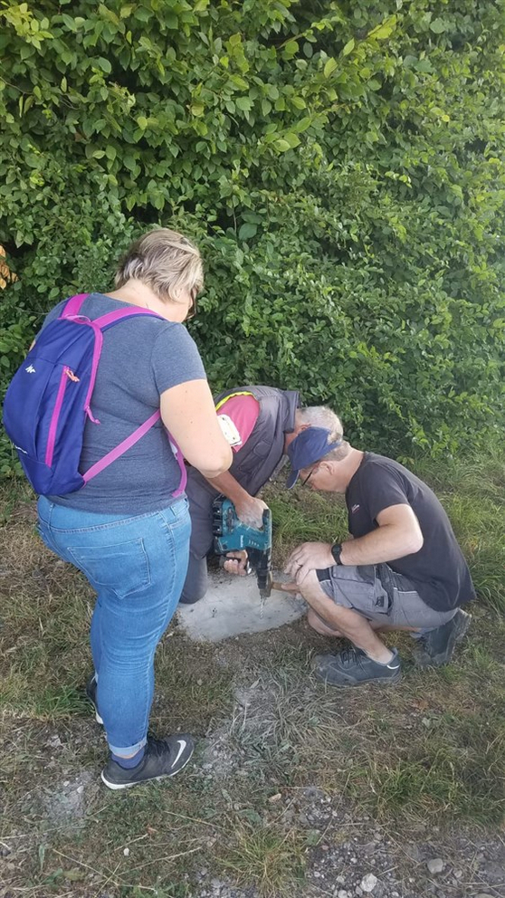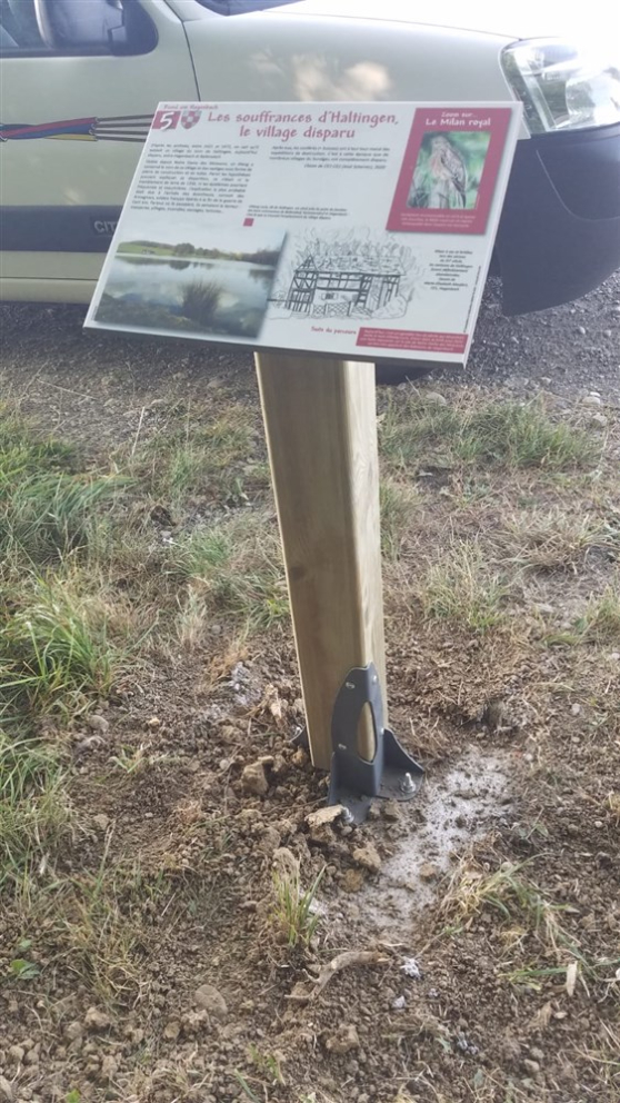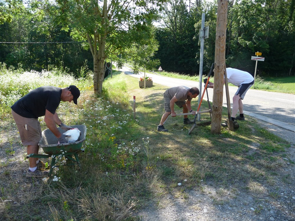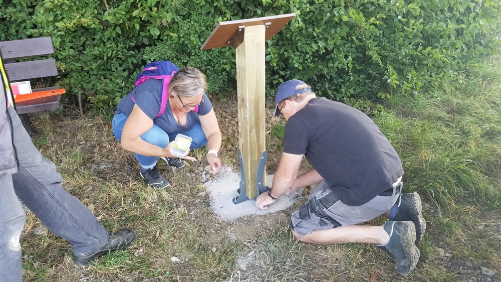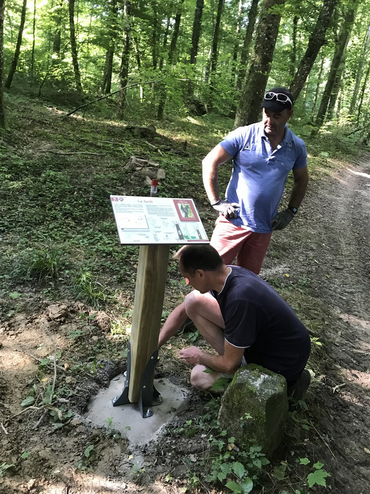 Les plaquettes de balisage ont été posées par les enseignants et les pupitres d’information et le panneau d’accueil ont été scellés au sol par les membres du conseil municipal.