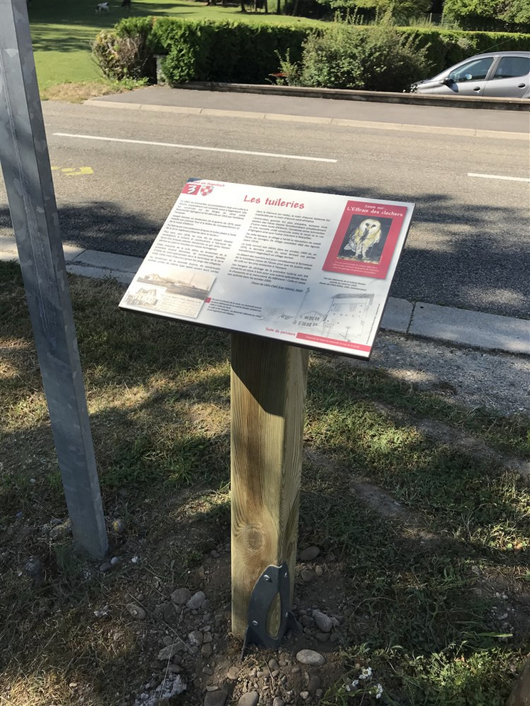 L’idée était, qu’au travers d’une promenade balisée qui démarre au parking de la salle la Tuilerie, de faire découvrir et connaitre notre village et son patrimoine par le biais de 10 thématiques commentées sur des tables de lecture posées tout au long du parcours.